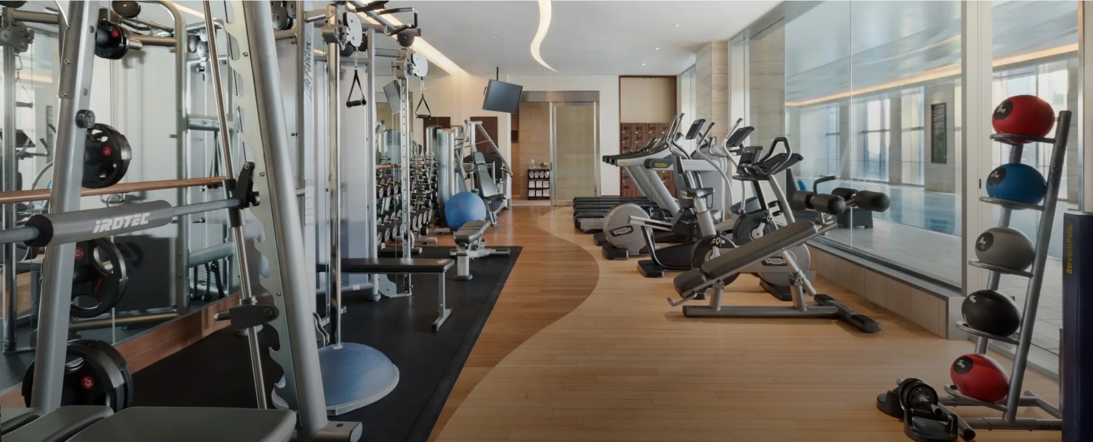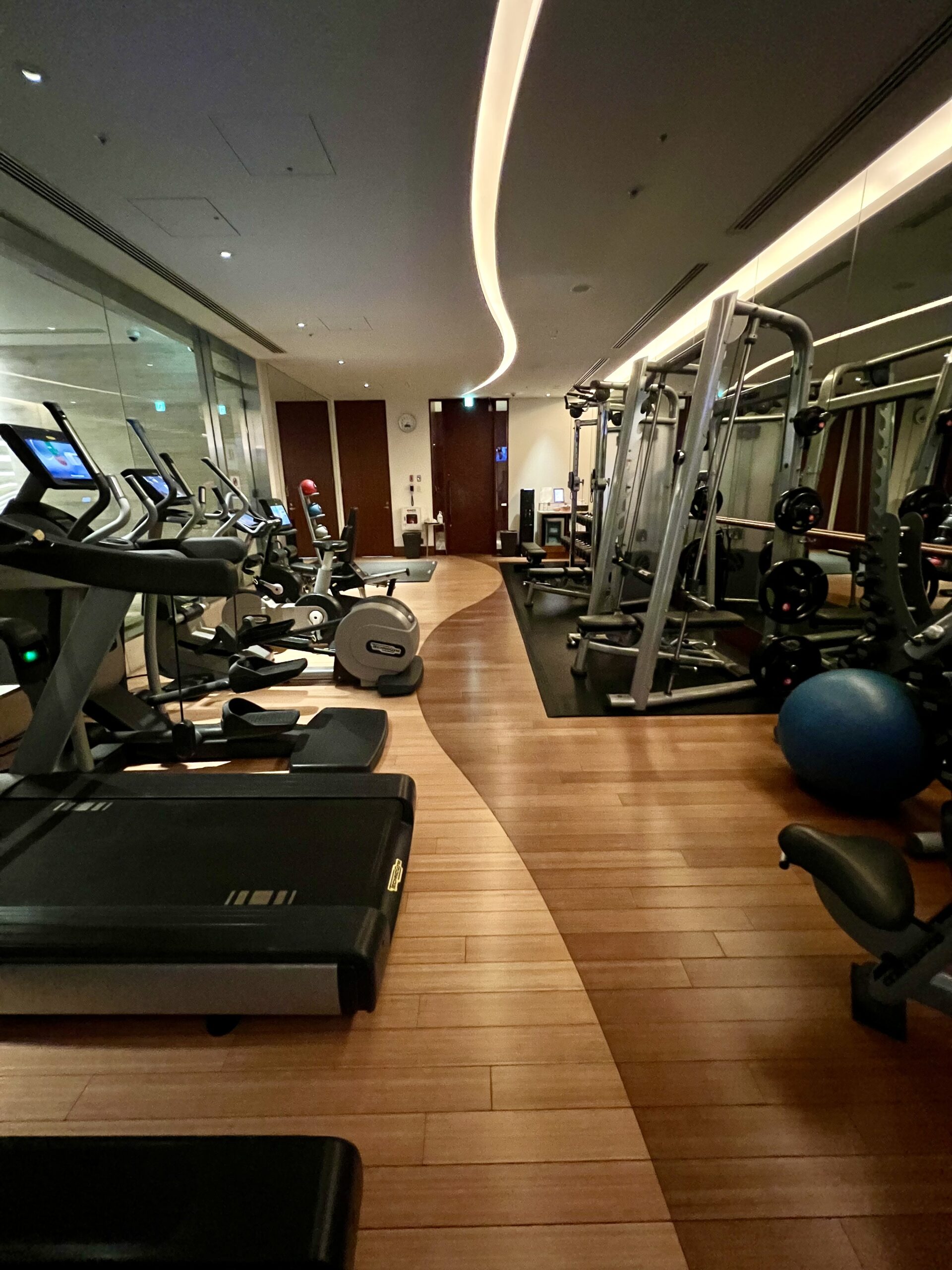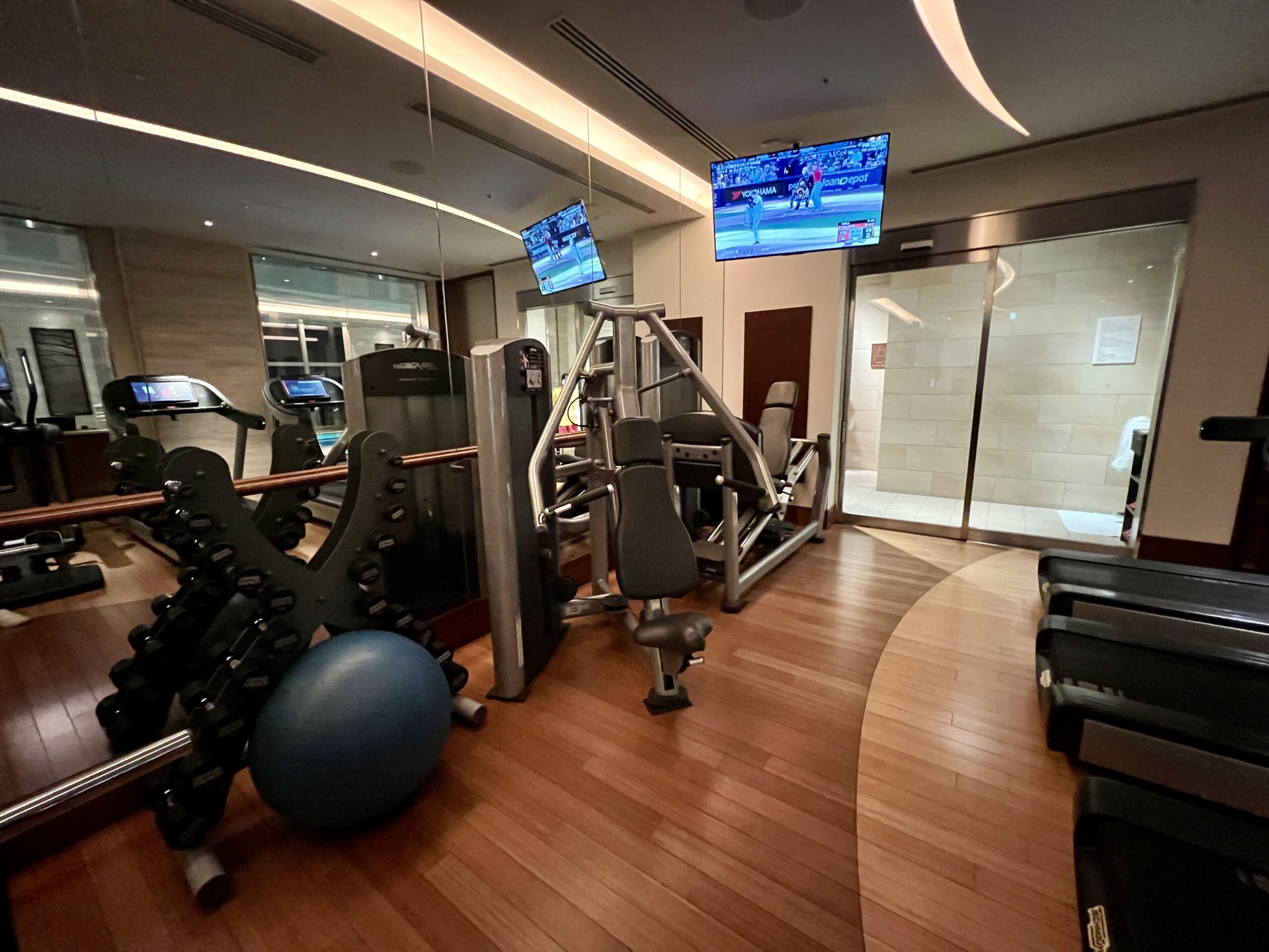 ジムとしてマシンの台数こそ少なめですが、スミスマシンとケーブルマシンがあり、大半の部位のトレーニングはできますし、高強度のトレーニングも可能です。ダンベルもホテルとしては珍しく30㎏まであり、ウェイトトレーニングの施設はとしては高強度のトレーニングが可能という面でかなり充実しており、パーソナルトレーニングが行われている施設であることも納得できます。プールエリアを眺めながら有酸素マシンを使えるのも珍しい構造であり、優雅な気分で有酸素運動を行うことができます。一見してマシンやスペースの少なさから小規模と思われがちですが、その中でもボディメイクに最も効率的なマシンが集約されており、しっかりとしたトレーニングが行える施設になっています。東京駅直結という素晴らしいロケーションで、ホテルステイ中も妥協しないトレーニーにうってつけのジムと思われます。