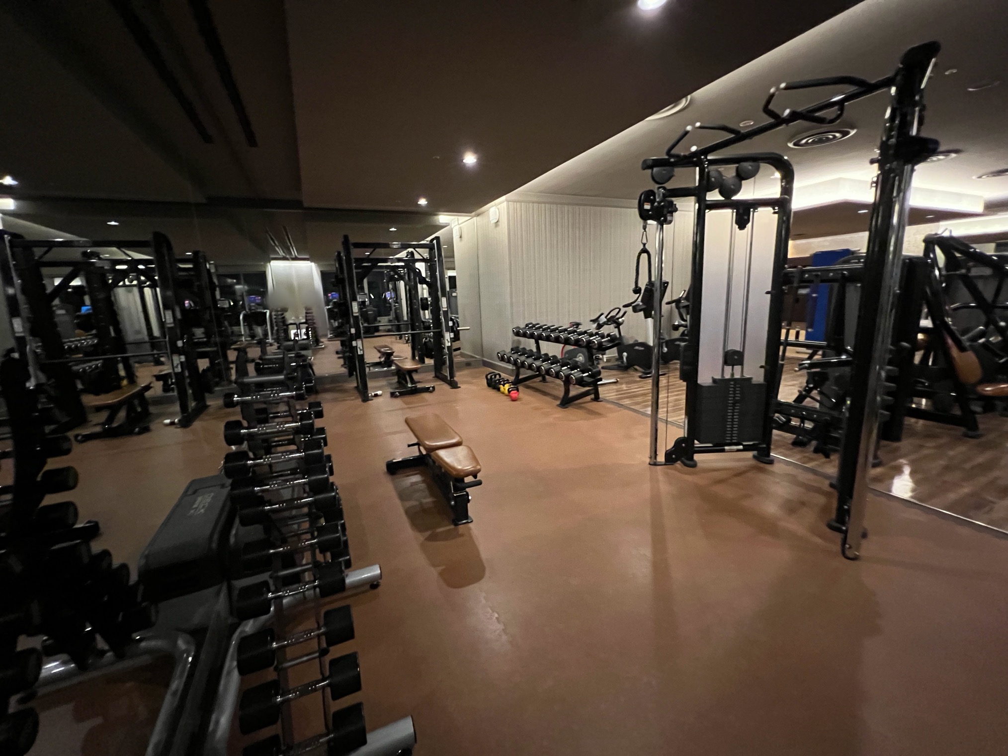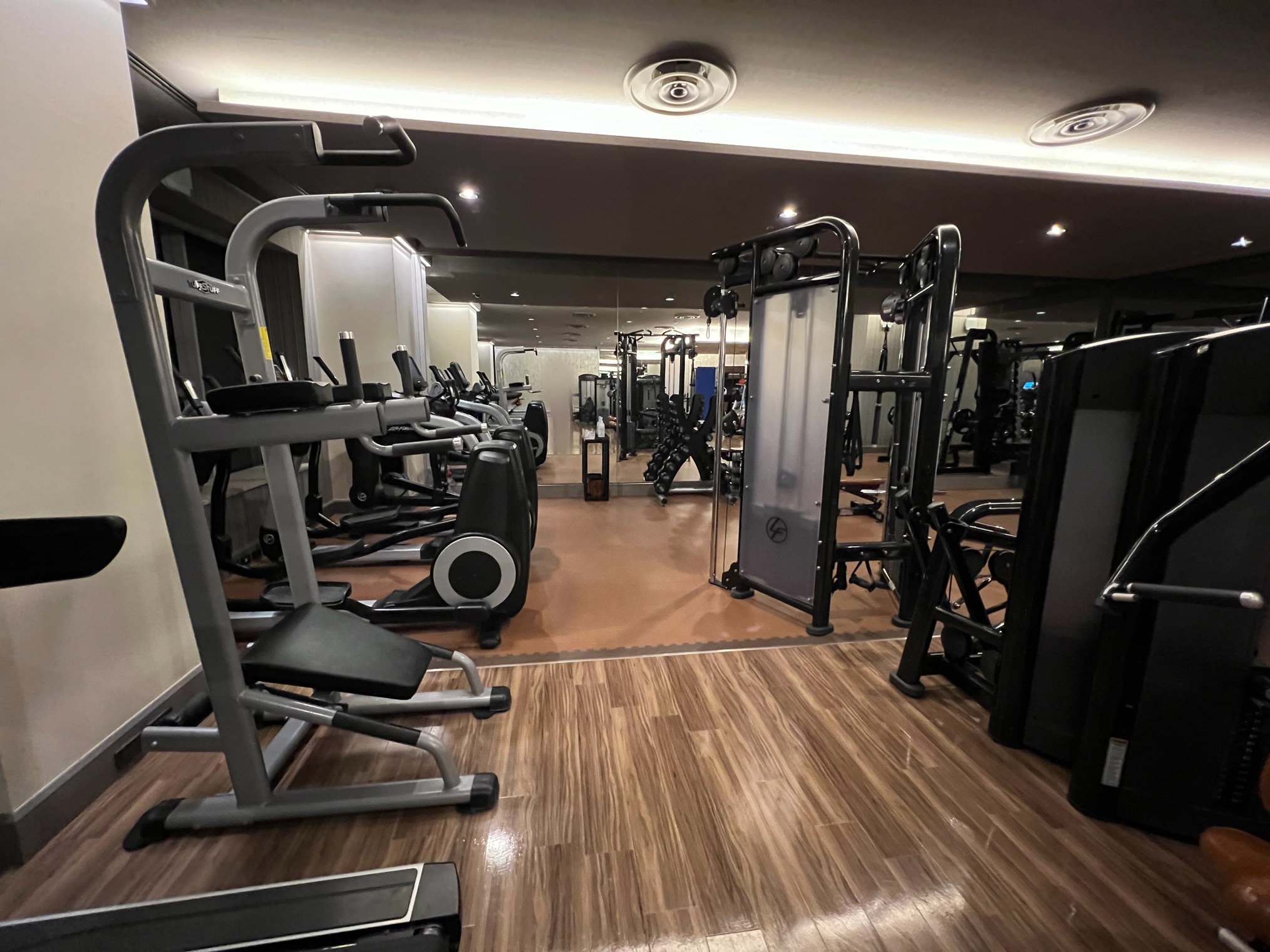 言わずと知れた最高級ホテルブランドであるリッツカールトン。スパやフィットネス施設は2,000㎡を超える面積で展開されており、ホテル名にも恥じない圧巻のウェルネス空間となっています。”Fitness Center”に関しても各部位複数のマシンが設備されており、スミスマシンをはじめとしたフリーウェイトでのトレーニングも十分に行える施設になっています。特に有酸素マシンや下半身~体幹部のマシンが充実しており、ボディメイクを大事にしている宿泊者やフィットネス会員を思ってのマシンチョイスとなっていると思われます。